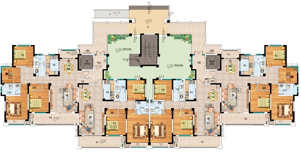 突出入戶大堂、小區(qū)入口。廣場地面雕刻出方磚鋪地,運(yùn)用人工分色處理,打磨噴涂上色;點(diǎn)綴一些汽車、行人、休憩椅、雕塑小品及各種植物等環(huán)境配套設(shè)施使商業(yè)廣場更添休閑味道,環(huán)境更加豐富。并在廣場設(shè)置地?zé)艏盁艄庖栽黾幽P鸵咕靶Ч?。在總體協(xié)調(diào)的基礎(chǔ)上,盡量提高空間感和視覺效果,按照實際施工尺寸適當(dāng)拉寬環(huán)境及建筑樓距,適當(dāng)放大中心園林空間,以獲得更感性合理的模型視覺(多設(shè)置公園椅、庭園燈、樹木等),充分體現(xiàn)出城市自然與人文環(huán)境相互融合的特性。