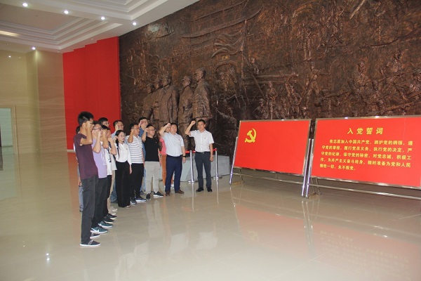 藕塘為抗日戰(zhàn)爭(zhēng)時(shí)期津浦路西革命根據(jù)地中心,素有“小莫斯科”之譽(yù)稱,是我省首批愛國主義教育基地。在莊嚴(yán)肅穆的烈士陵園,全體人員首先在講解員的帶領(lǐng)下依次參觀了藕塘紀(jì)念館的各個(gè)展區(qū),觀看珍貴的文物、文獻(xiàn)、照片等資料,回顧黨的光輝歷程,追尋英雄足跡,緬懷先烈事跡,再次被劉少奇、葉挺、羅炳輝等老一輩無產(chǎn)階級(jí)革命家的壯烈事跡所感動(dòng)。隨后來到紀(jì)念館大廳前,全體黨員面對(duì)鮮紅的黨旗,重溫入黨誓詞,進(jìn)一步牢固“不忘初心、牢記使命”的政治信念。